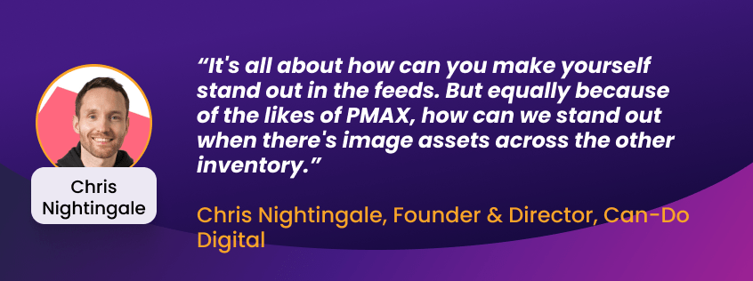 During the retail peak season, the feeds are flooded with different ads and product offerings, making it particularly difficult to be noticed. Chris Nightingale, Founder and Director of Can-Do Digital, shares how to optimise and stand out in an over-saturated industry. “In a retail peak like Black Friday for example, standing out is still really difficult,” he admits. “So when, when I’m probably looking at feeds with the clients that I work with, it’s all about how can you make yourself stand out on that carousel. But equally because of the likes of PMAX, how can we stand out when there’s image assets across the other inventory like display, YouTube, Gmail.