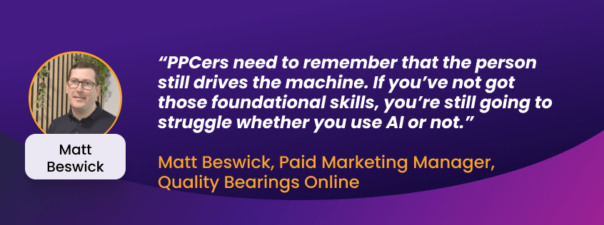 AI is without a doubt the biggest disruptor in the PPC industry for 2025, forcing professionals to adapt quickly. But as Matt Beswick, Paid Marketing Manager at Quality Bearings Online, points out, it’s important not to lose sight of the fundamentals—like commercial awareness—which are all too often overlooked.