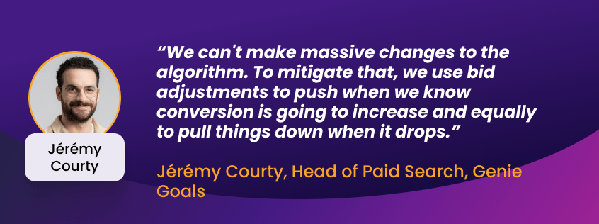 During retail peak periods, it’s tempting to ramp up your budget to chase the extra traffic. But Jérémy Courty, Head of Paid Search at Genie Goals, warns that big budget swings during these peaks can sometimes do more harm than good. “We would never make a big change in budget, or reduce/increase the target rates a huge amount when using PMAX, because it’s just going to make the tool go into a frenzy,” he warns. “You’re broadening up the restrictions and it’s going to try to look after new queries and new inventory that it’s never learned from before.
