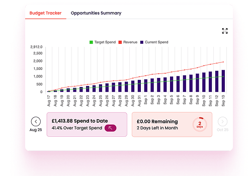 Adzooma’s Budget Tracking gives one clear view of your spend, helping you stay on pace, avoid overspend, and protect ROI automatically.