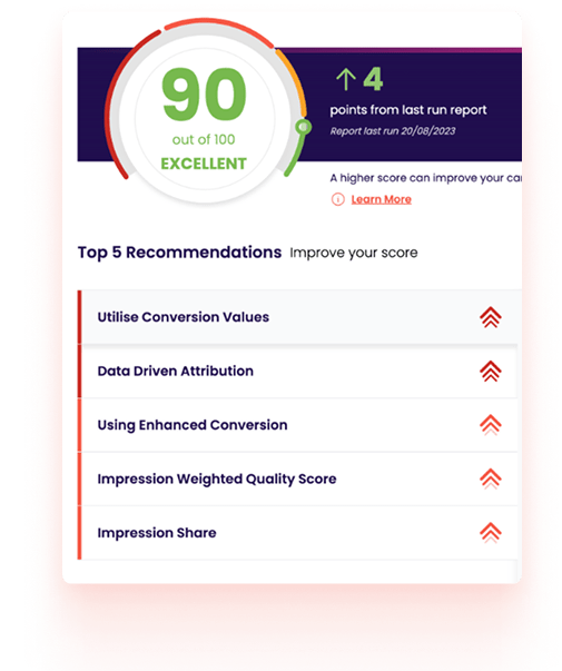 Yes, to generate your personalised performance report and recommendations, you’ll need to securely connect your Google Ads account. You can also choose to connect Meta and Microsoft Ads if you want multi-platform insights.