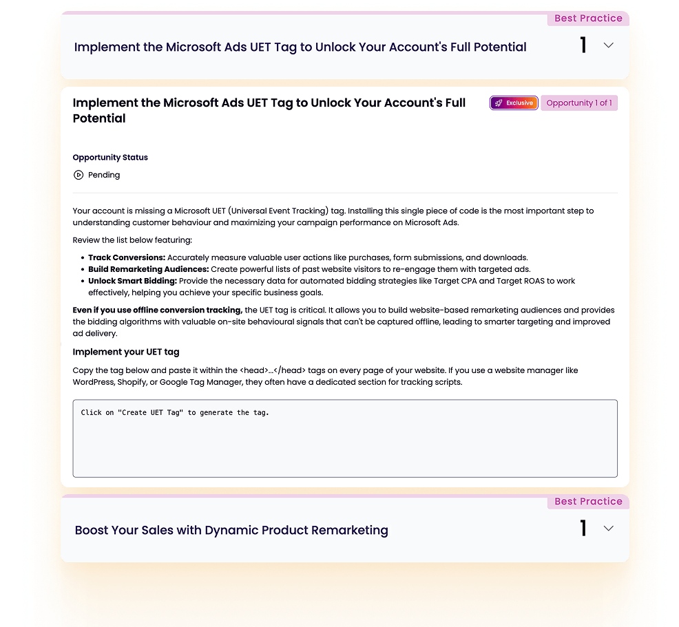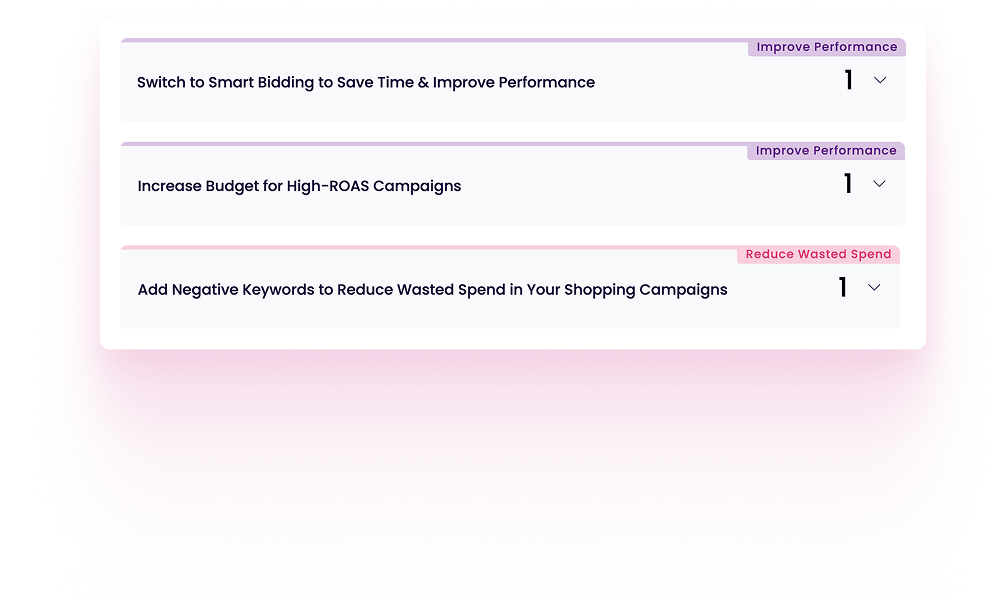 Not always. Many recommendations can be actioned directly within Adzooma’s dashboard, while others provide clear, guided steps for implementation in Google or Microsoft Ads.