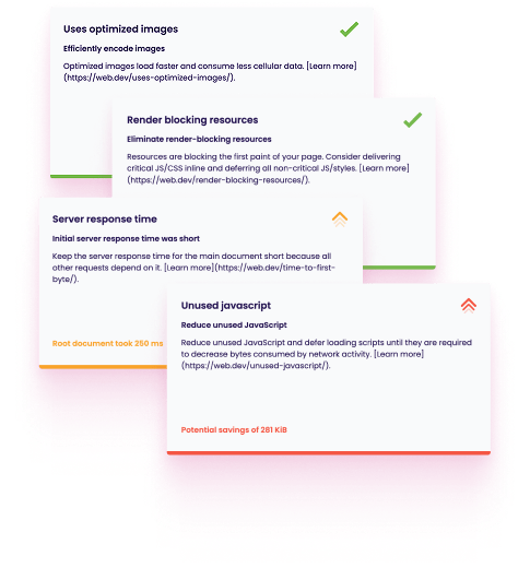 See what’s slowing your site down and get clear actions to improve user experience – in minutes.